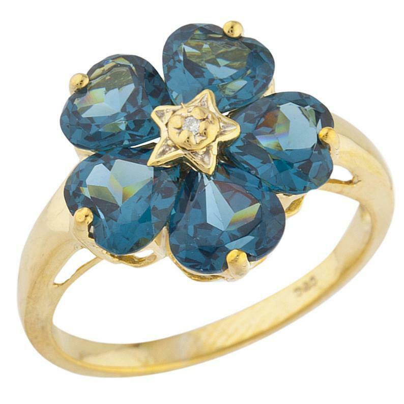 5ct Engagement Ring Heart Cut London Blue Topaz Floral 14k Yellow Gold Finish