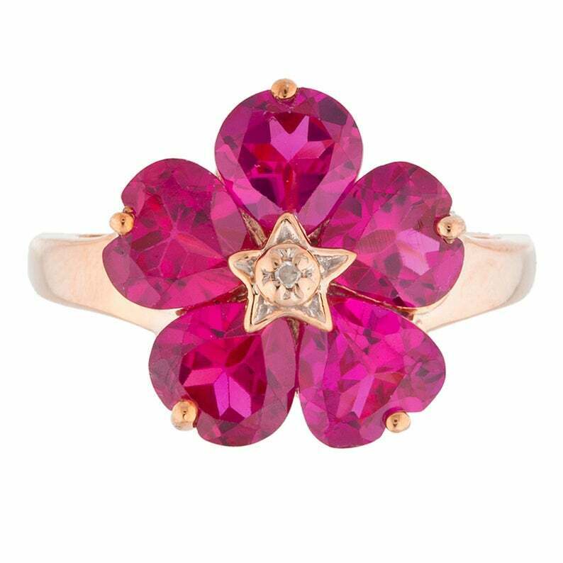 5ct Engagement Ring Heart Cut Pink Ruby Floral Women 14k Rose Gold Finish