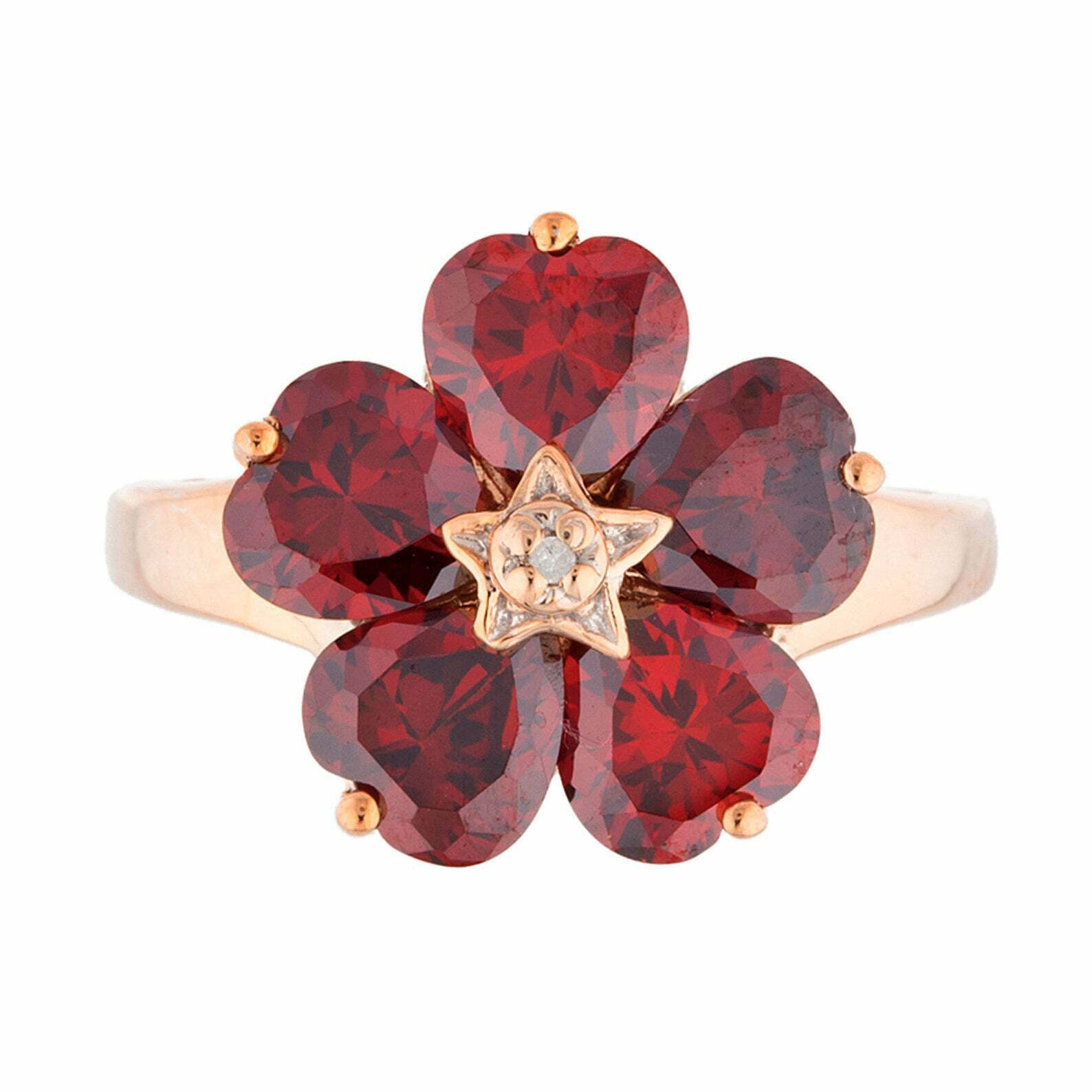 5ct Engagement Ring Heart Cut Red Garnet Floral Women 14k Rose Gold Finish