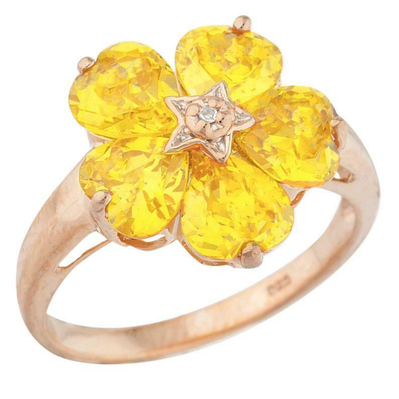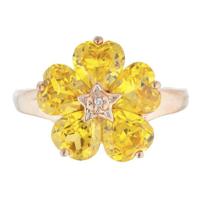 5ct Engagement Ring Heart Cut Yellow Citrine Floral Women 14k Rose Gold Finish