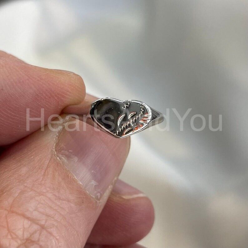 Baby Engraved Heart Signet Engagement Ring 14k White Gold Plated