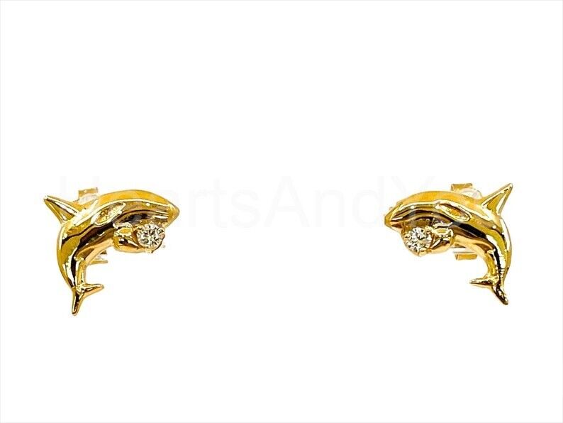 0.012ct Round Cut Moissanite Dolphin Stud Earrings Women 14k Yellow Gold Plated