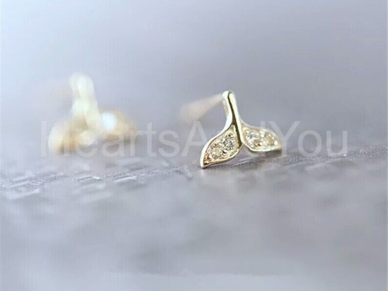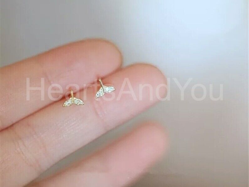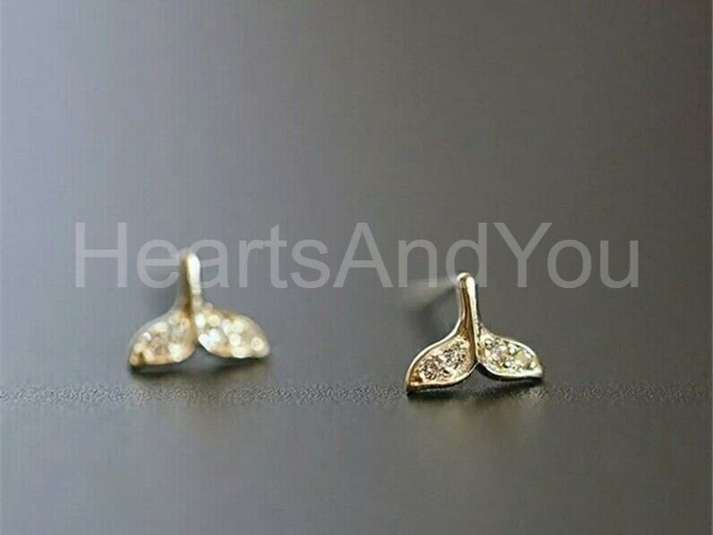 0.01ct Round Cut Moissanite Whale Fin Stud Earrings 14k Yellow Gold Plated