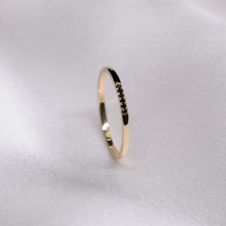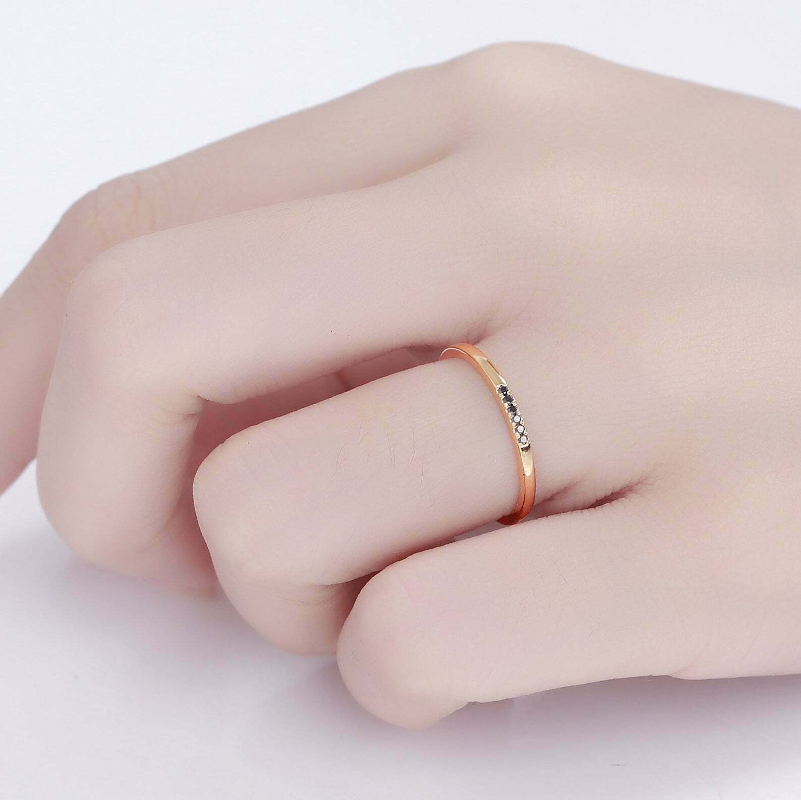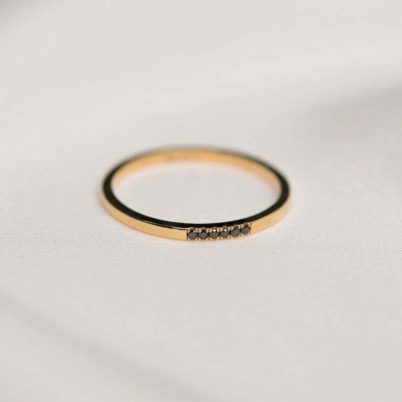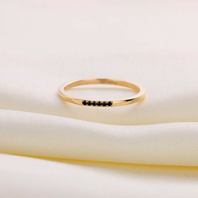 0.09ct Round Cut Black Diamond Wedding Band Minimalist 14k Yellow Gold Finish