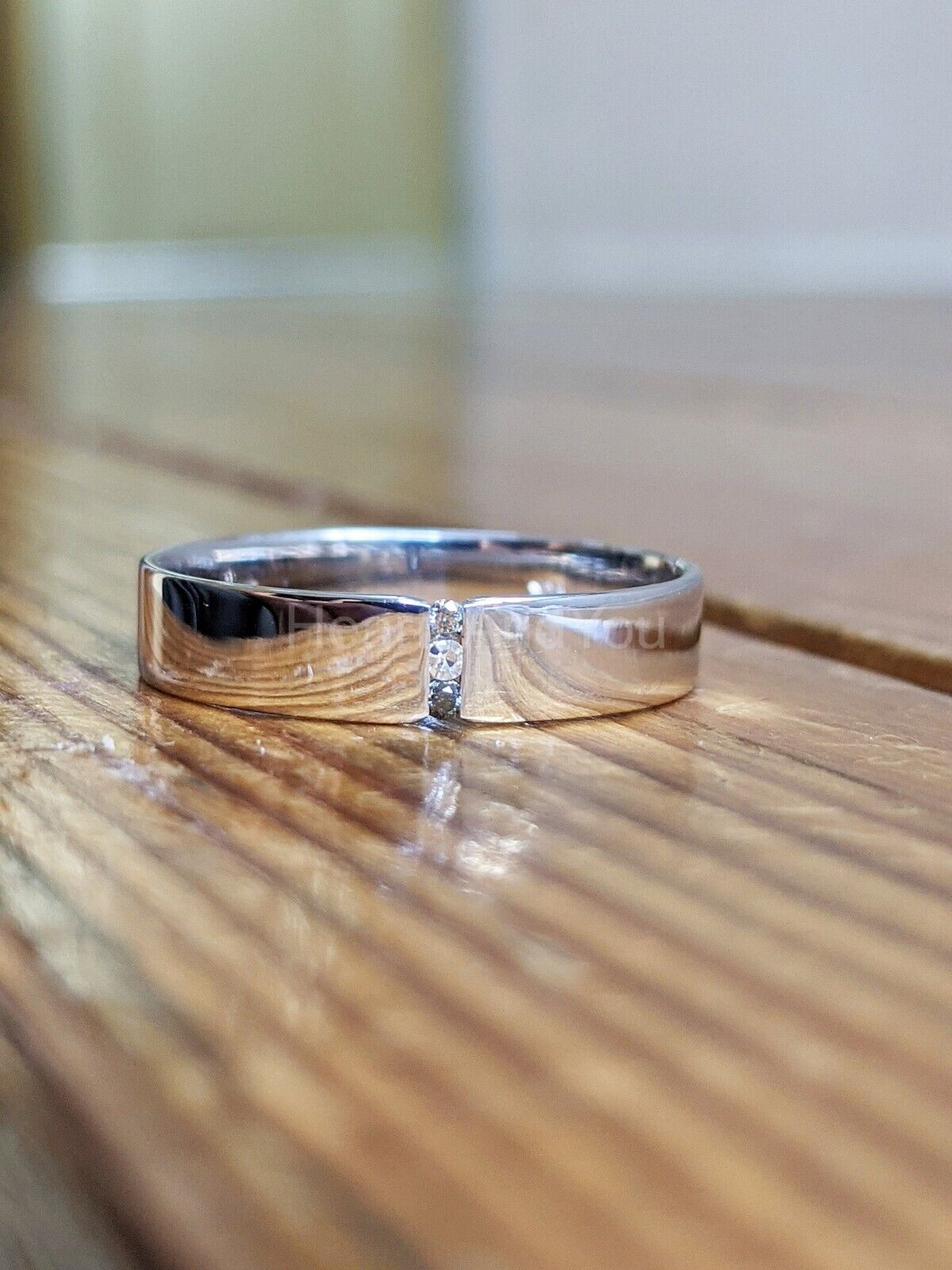 0.15ct Round Cut Moissanite Bezel Tension Set Wedding Band 14k White Gold Plated