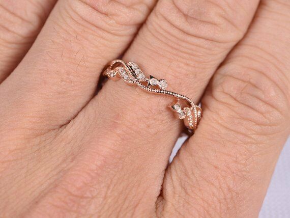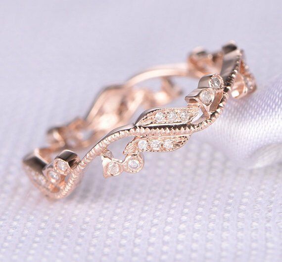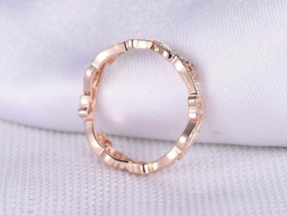 0.1ct Round Cut VVS1 D Diamond Vintage Antique Wedding Band 14k Rose Gold Finish