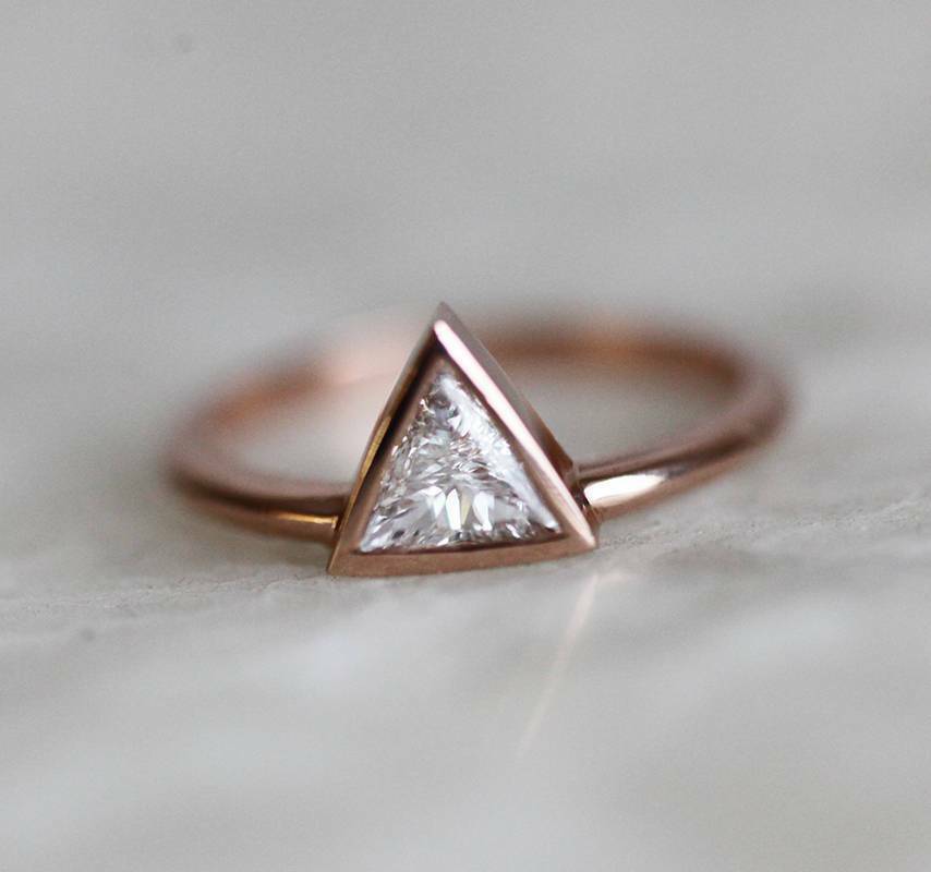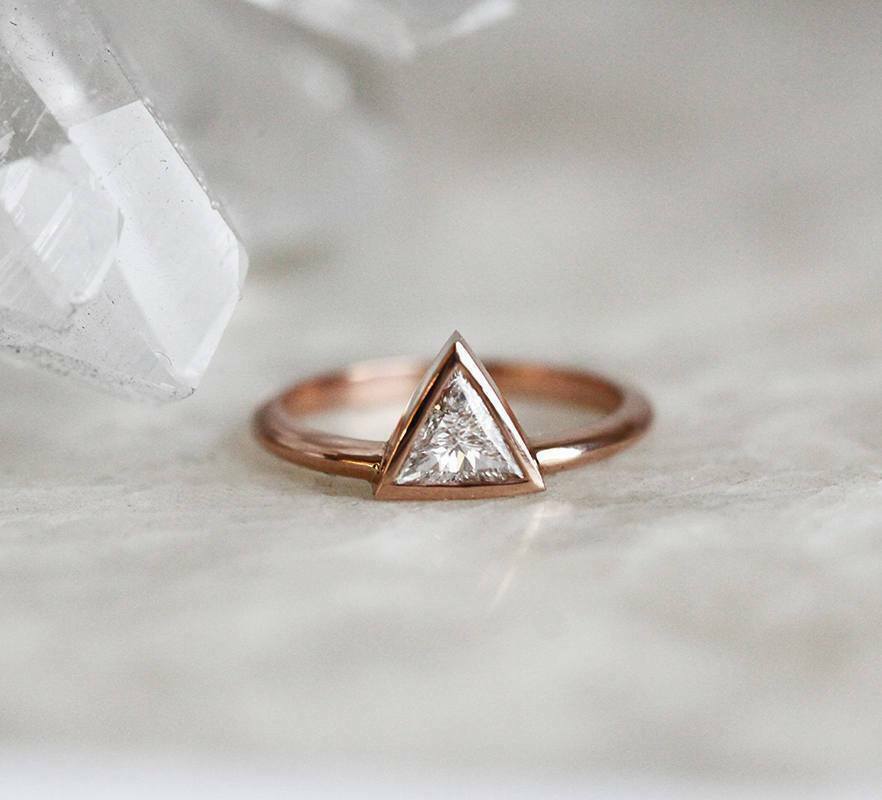0.25ct Trillion Cut VVS1 Diamond Engagement Ring Minimalist 14k Rose Gold Finish