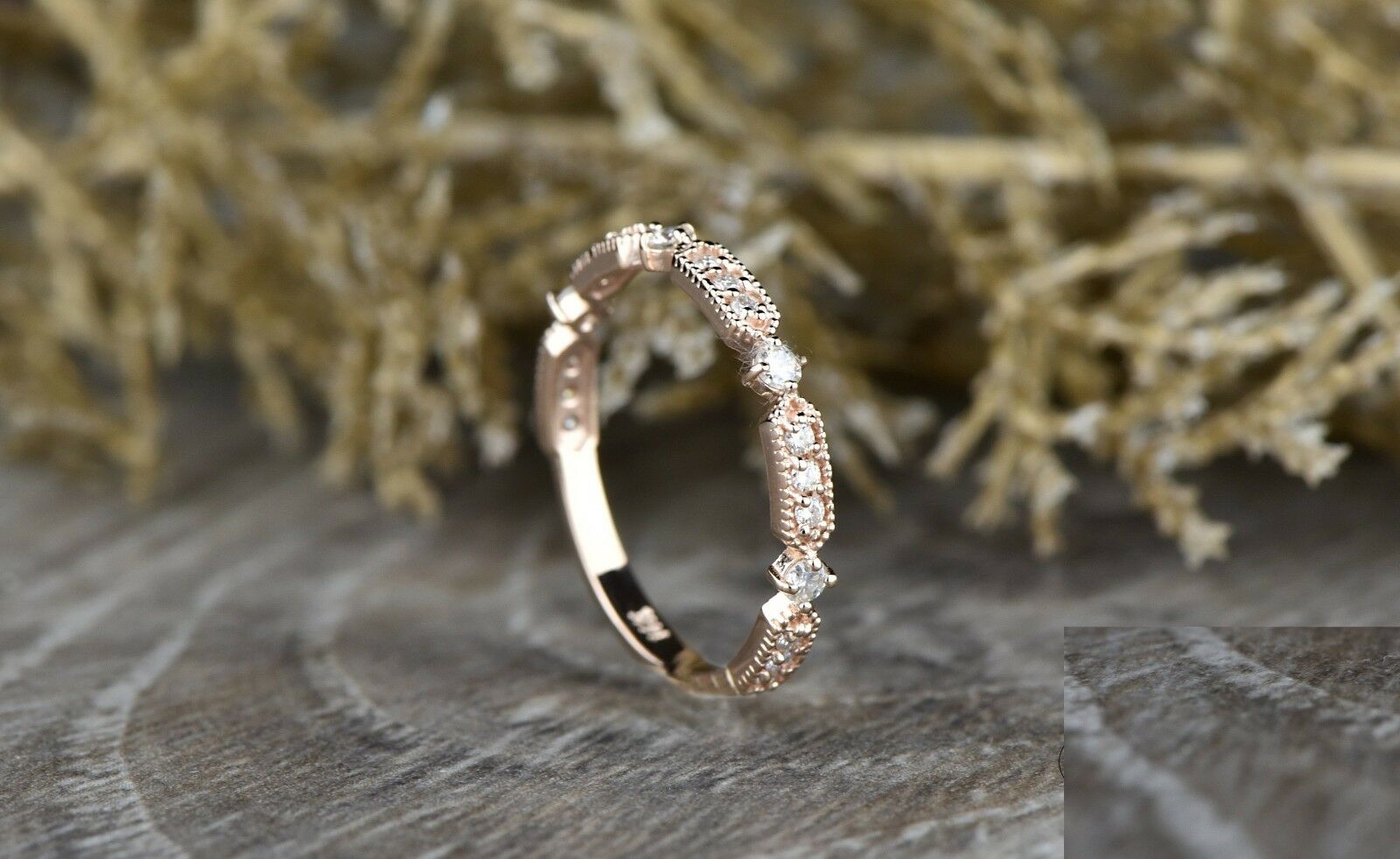 0.28ct Round Cut Diamond Wedding Ring Band 14k Rose Gold Finish Milgrain Vintage