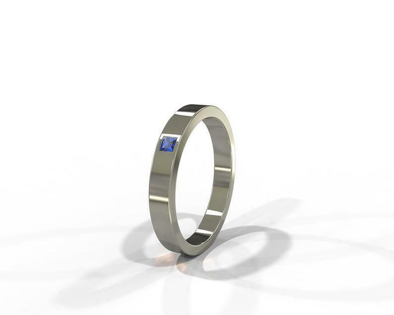 0.2ct Princess Cut Blue Sapphire Plain Solitaire Wedding Band 14k WhiteGold Over