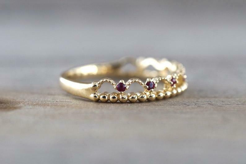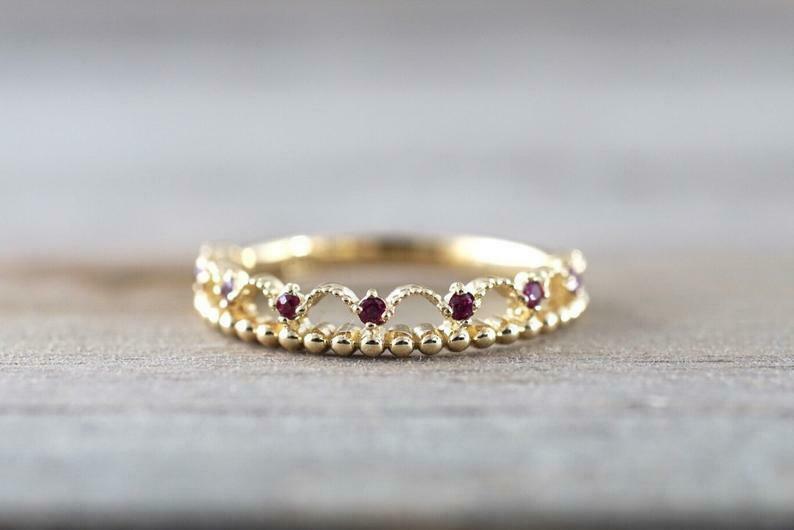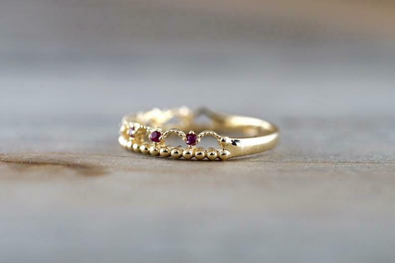 0.2ct Round Cut Pink Ruby Engagement Ring 14k Yellow Gold Finish Crown Tiara