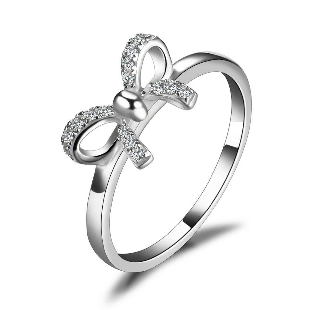 0.2Ct Round Cut VVS1D Diamond Engagement Ring Infinity Bow 14k White Gold Finish