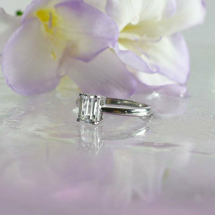 0.3ct Emerald Cut Diamond Engagement Ring 14k White Gold Finish Solitaire Women
