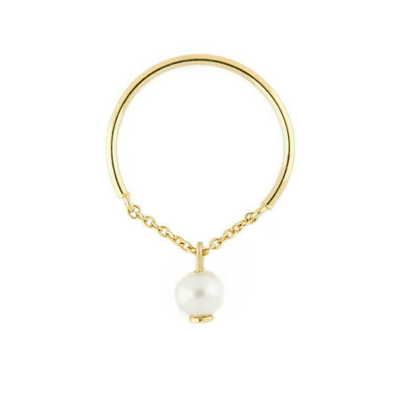 0.3ct Pearl Dangling Women Chain Ring 14k Yellow Gold Finish