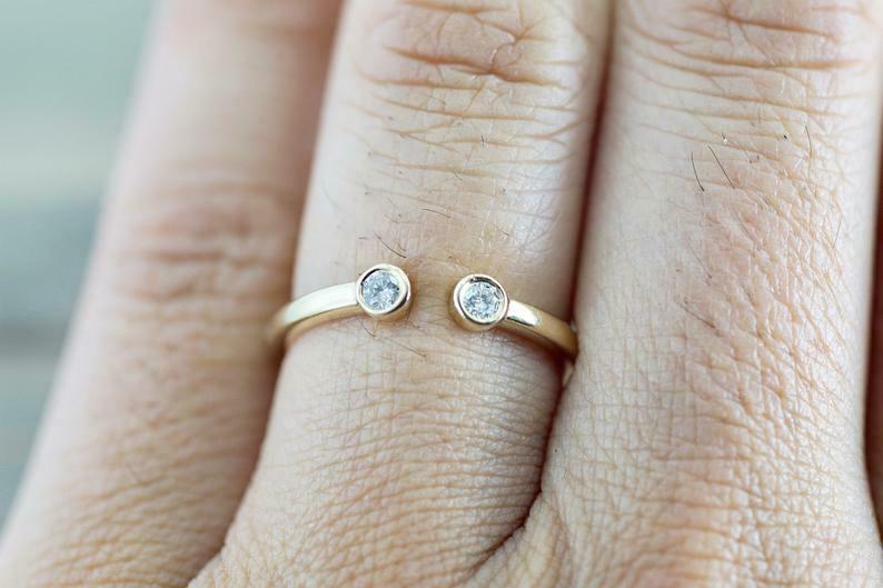 0.3ct Round Cut Diamond Engagement Ring 14k Yellow Gold Finish Bezel Set Open