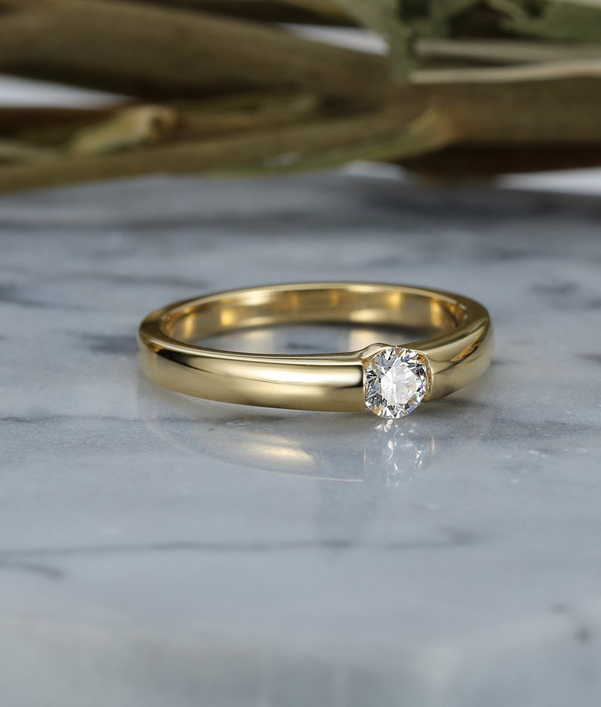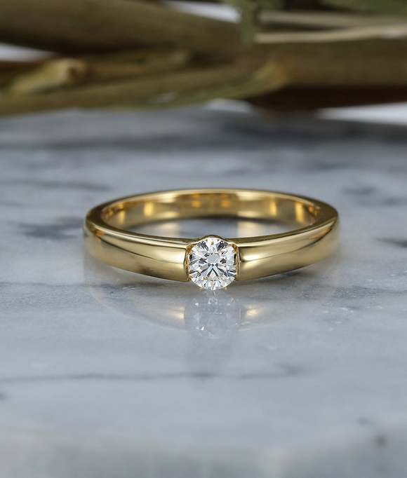 0.3ct Round Cut Diamond Engagement Ring 14k Yellow Gold Finish Solitaire Promise