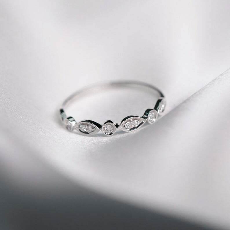 0.3ct Round Cut Diamond Wedding Band Milgrain Half Eternity 14k White Gold Finish