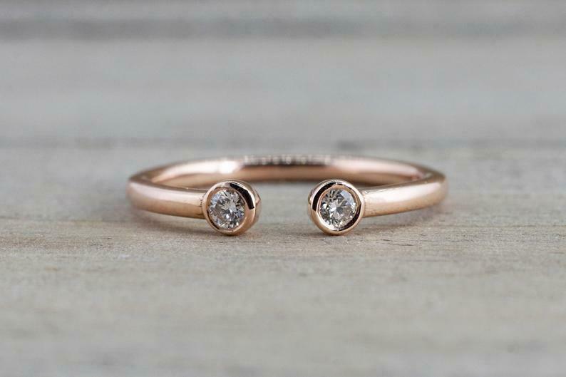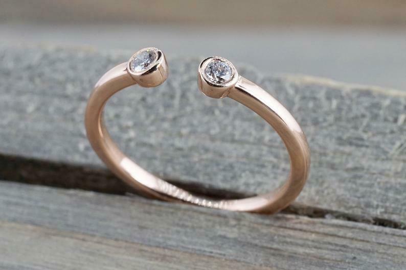 0.3ct Round Cut VVS1D Diamond Bezel Set Open Engagement Ring 14k Rose Gold Over