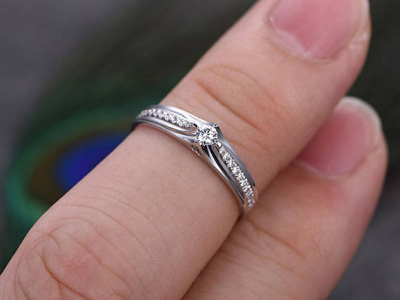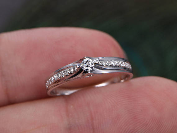 0.3ct Round Diamond Engagement Ring 14k White Gold Finish Solitaire Wedding Band