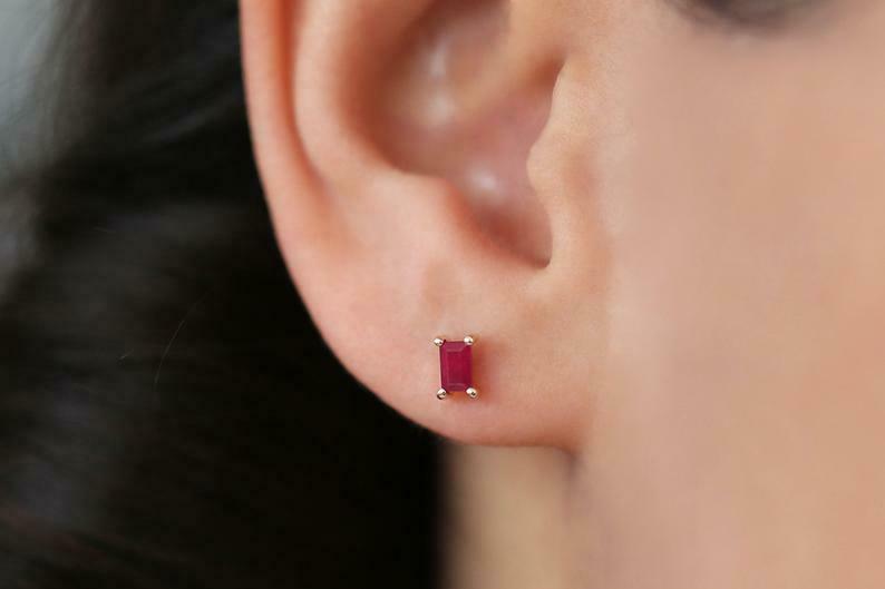 0.4ct Baguette Cut Pink Ruby Solitaire Women Stud Earrings 14k Yellow Gold Finish