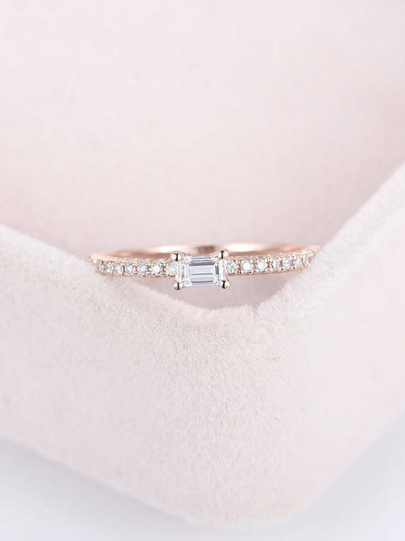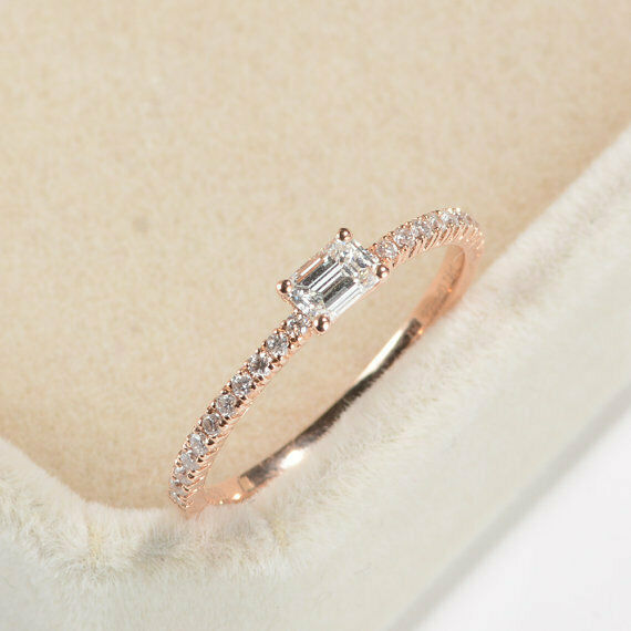 0.4ct Baguette Cut VVS1D Diamond Engagement Ring Minimalist 14k Rose Gold Finish