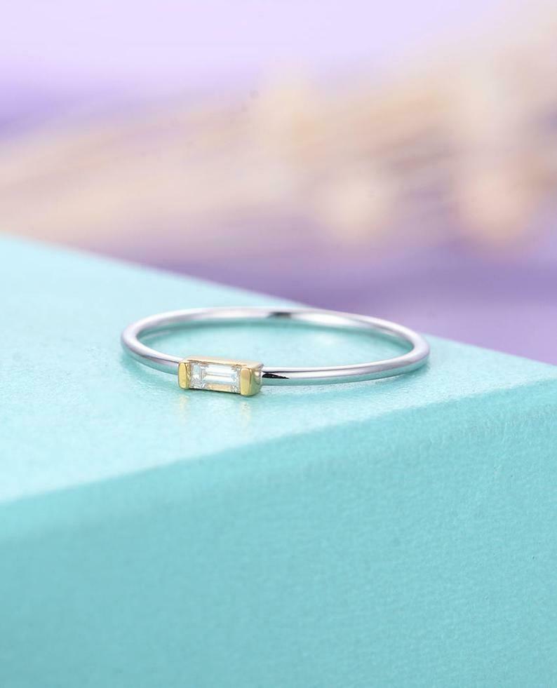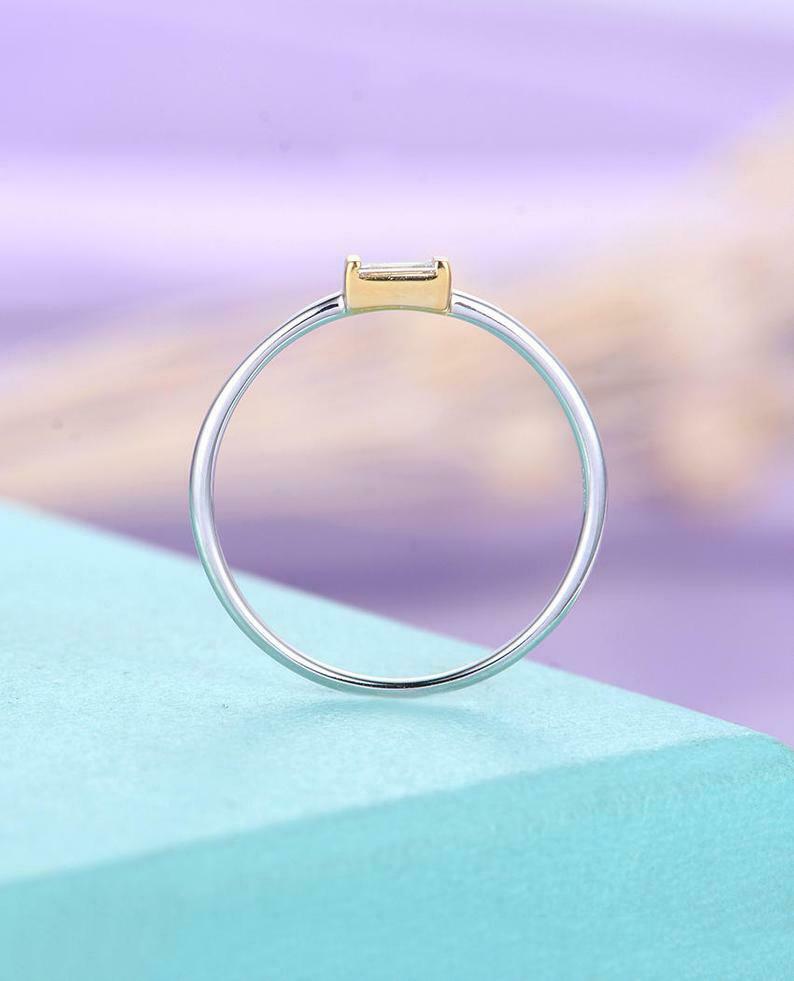 0.4ct Baguette Diamond Engagement Ring Minimalist Solitaire 14k Dual Gold Finish