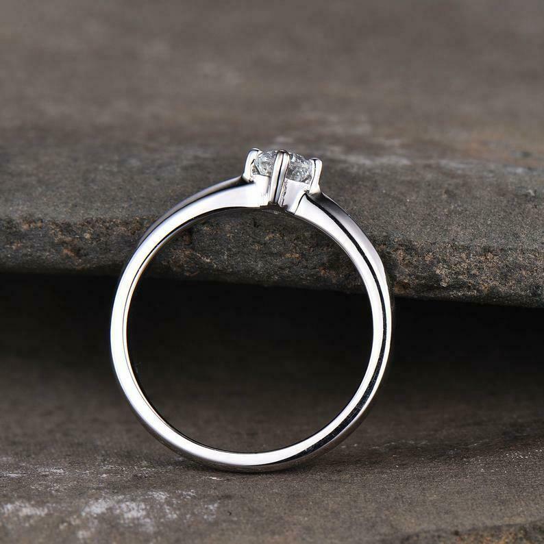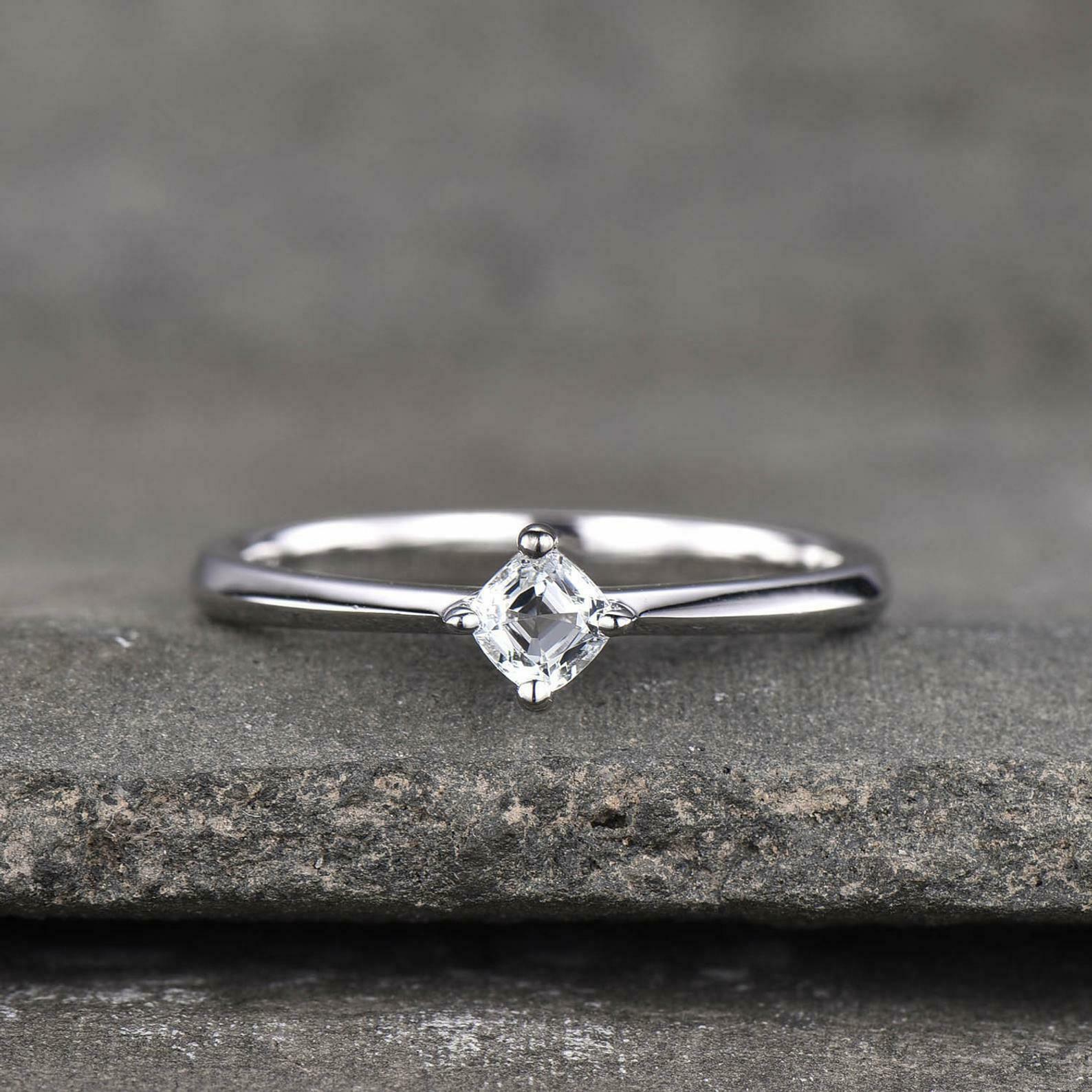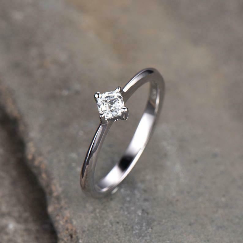 0.4ct Engagement Ring Cushion Cut Diamond Solitaire Design 14k White Gold Finish