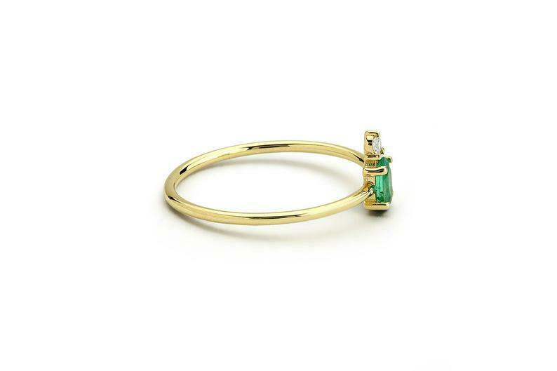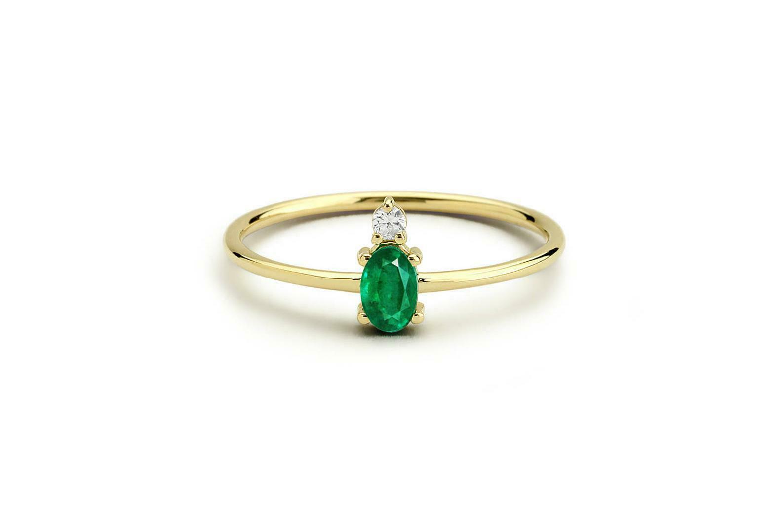 0.4ct Oval Green Emerald 2 Stone Minimalist Engagement Ring 14k Yellow Gold Over