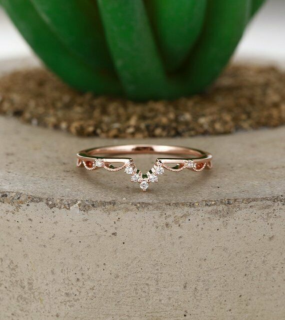 0.4ct Round Cut Diamond Engagement Ring 14k Rose Gold Finish Stackable Fancy
