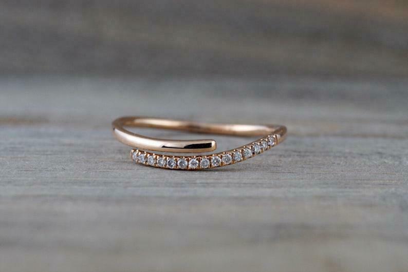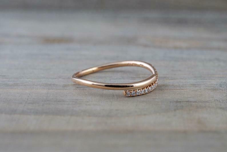 0.4ct Round Cut Diamond Wedding Band 14k Rose Gold Finish Open Curve Anniversary