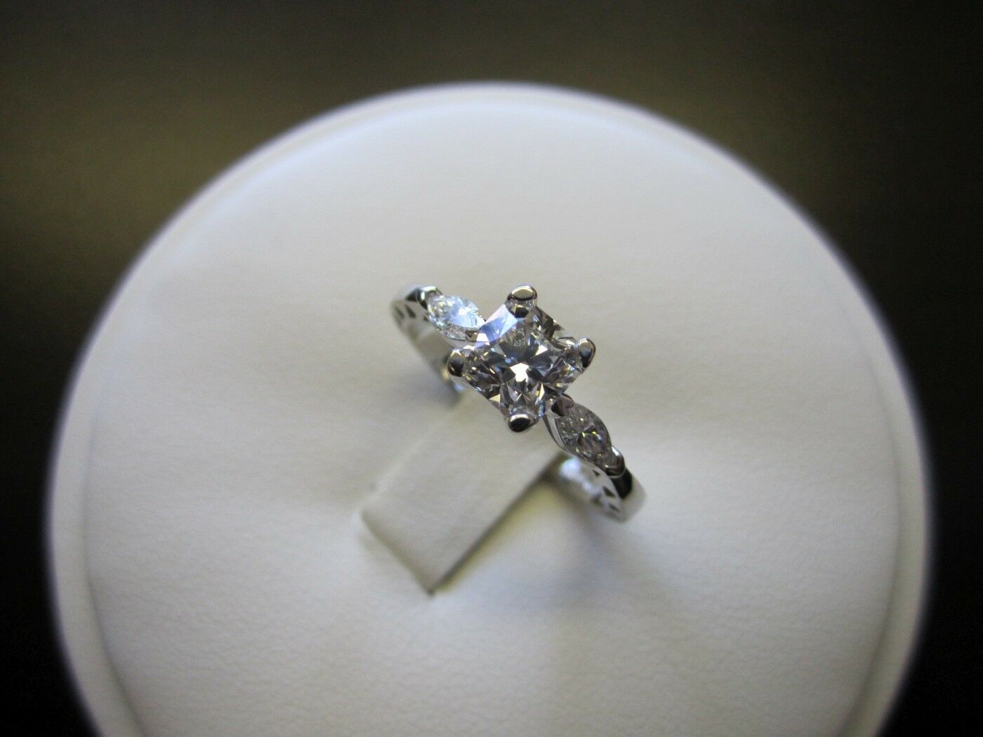 0.5ct Asscher Cut VVS1 D Diamond Solitaire Engagement Ring 14k White Gold Finish
