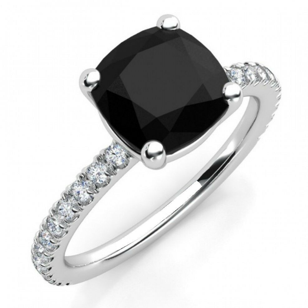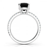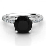 0.5ct Cushion Cut Black Accent Diamond Engagement Ring 14k White Gold Finish