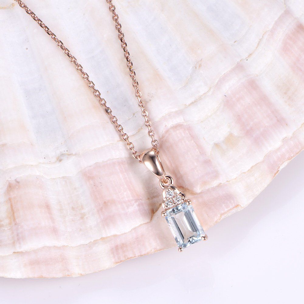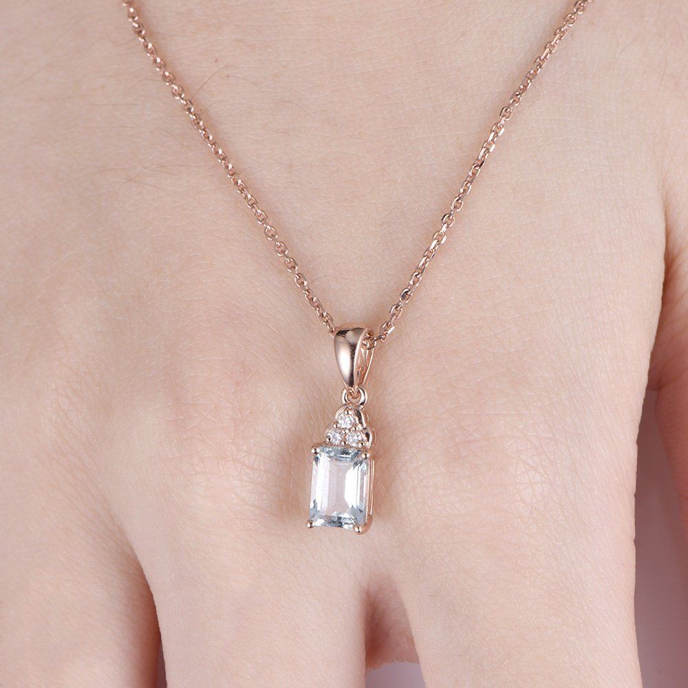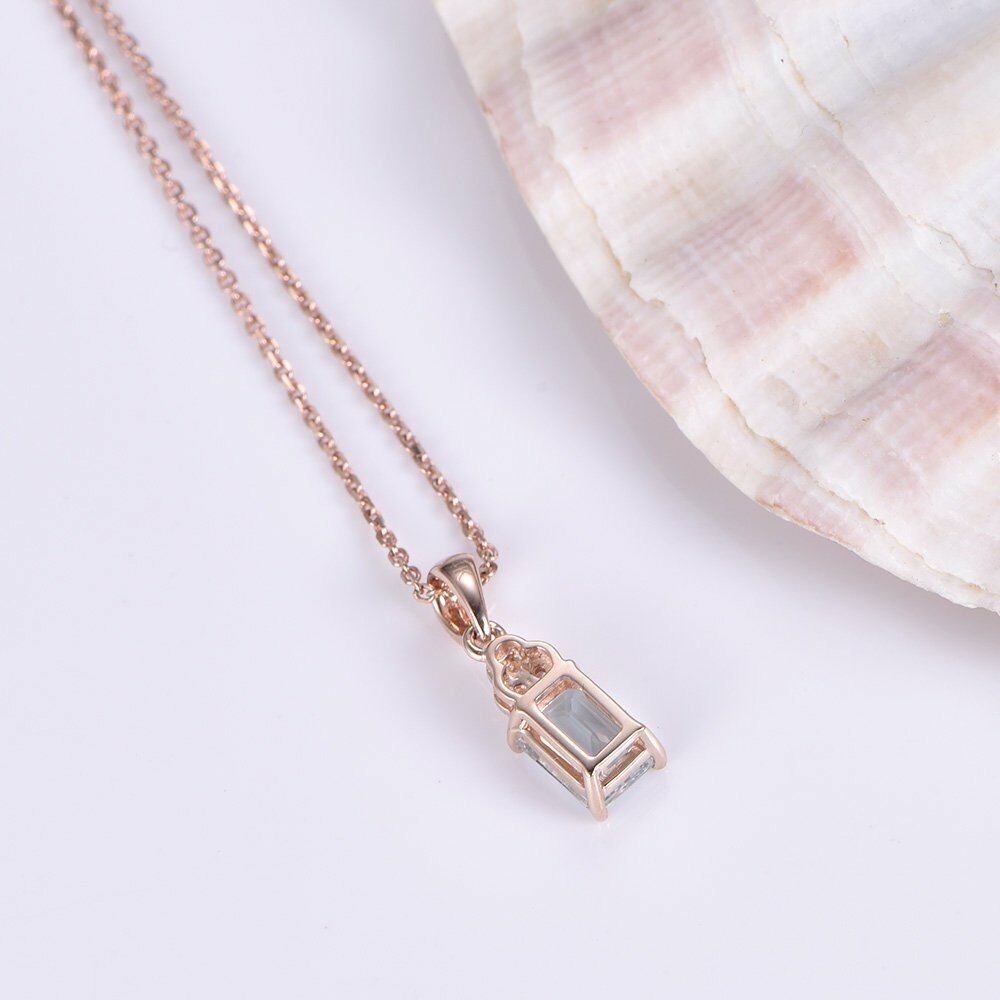 0.5ct Emerald Cut Blue Aquamarine Fancy Pendant 14k Rose Gold Finish NO CHAIN
