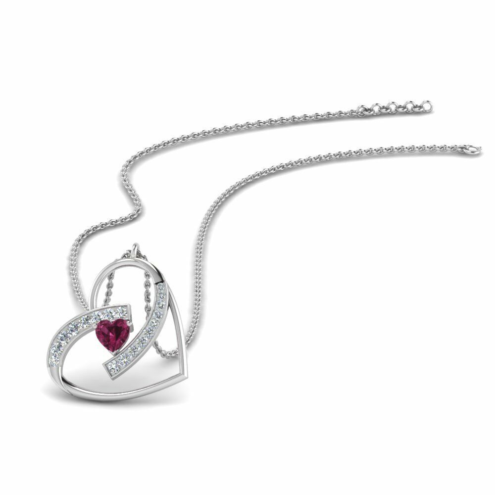 0.5ct Heart Cut Pink Ruby Love Valentine Pendant 14k White Gold Finish NO CHAIN