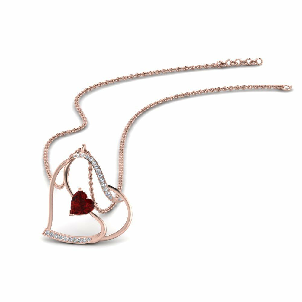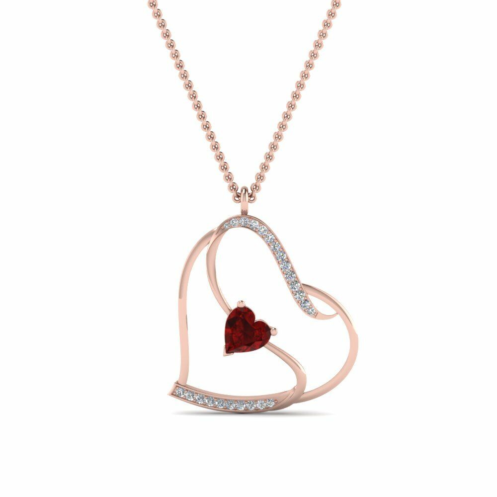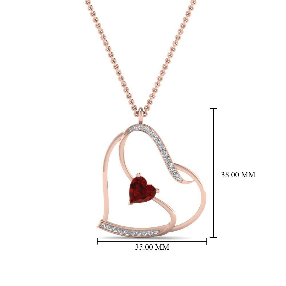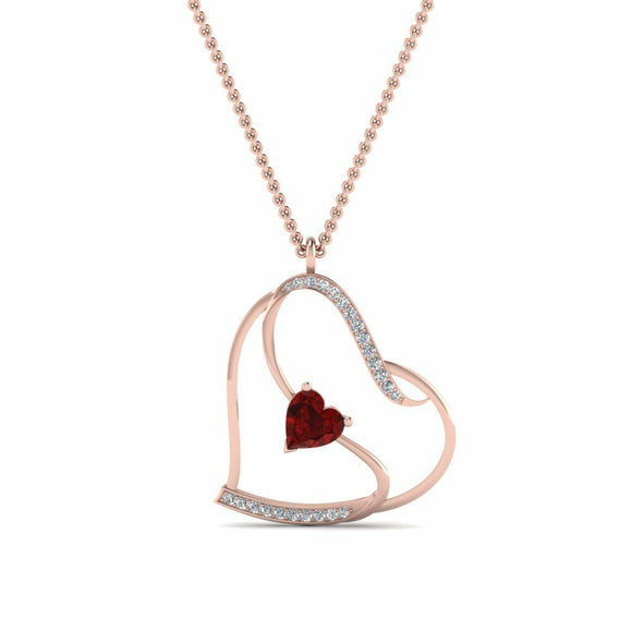 0.5ct Heart Cut Red Garnet Love Valentine Pendant 14k Rose Gold Finish NO CHAIN