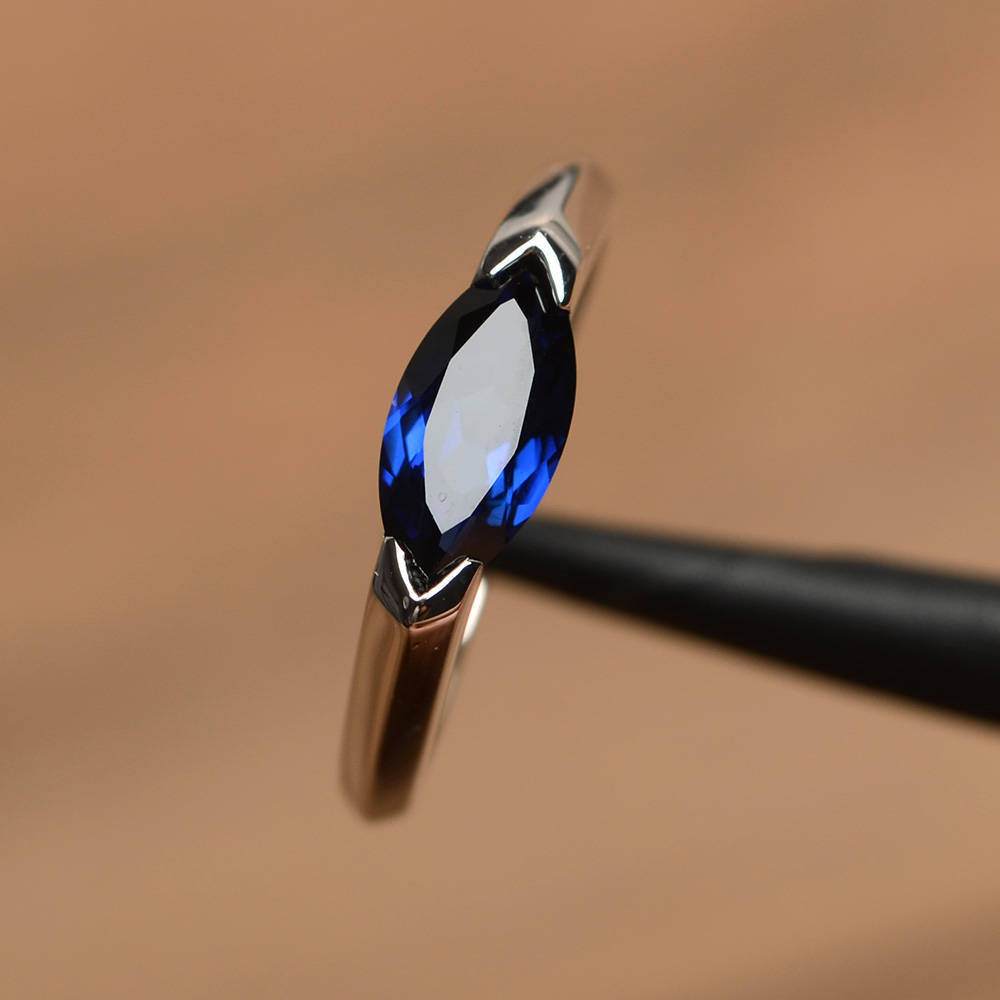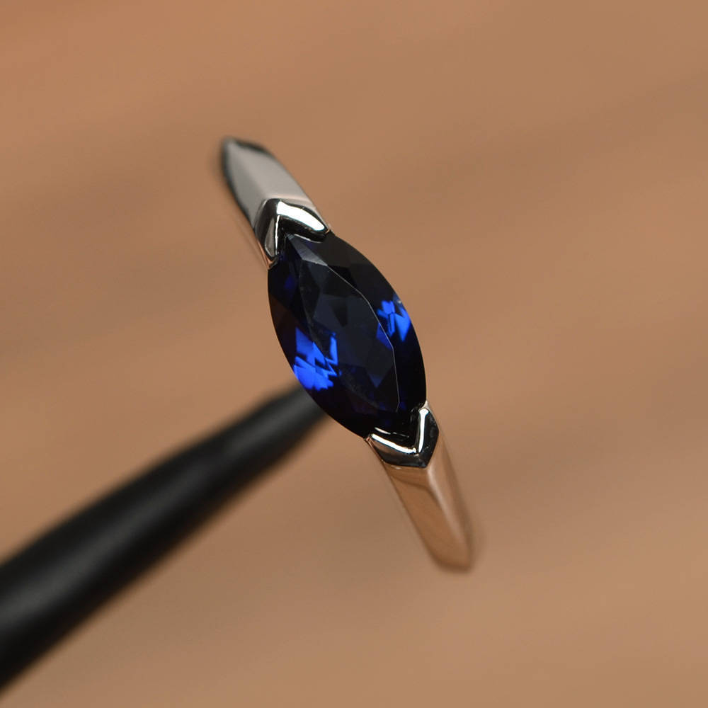 0.5ct Marquise Cut Blue Sapphire Solitaire Engagement Ring 14k White Gold Finish