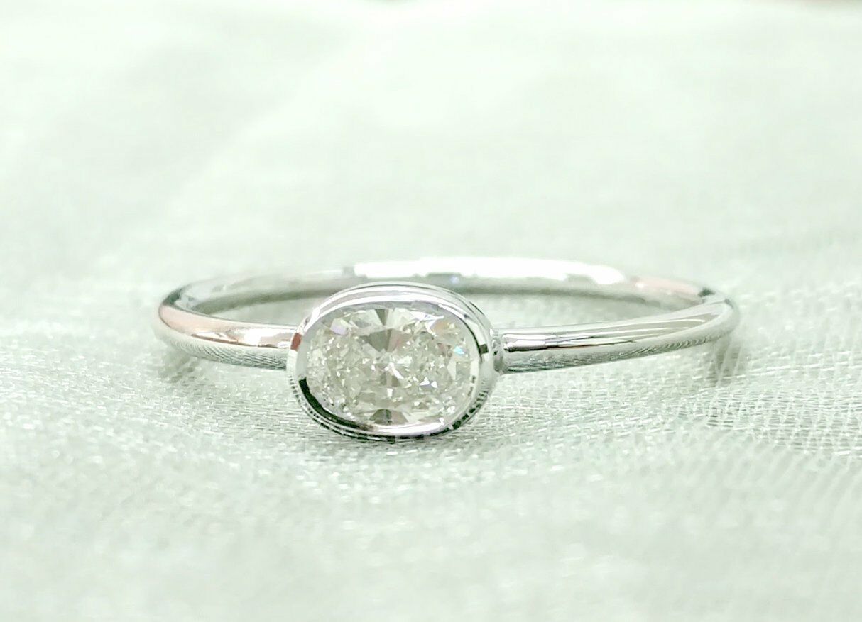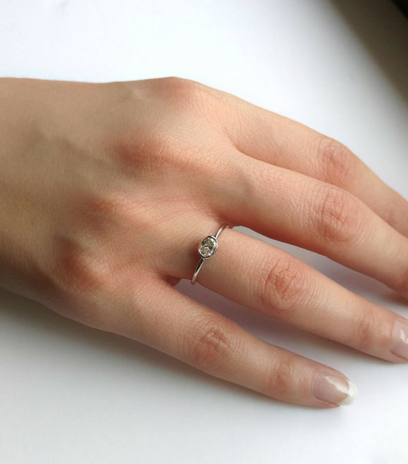 0.5ct Oval Cut Diamond Slim Minimalist Pinky Engagement Ring 14k White Gold Over