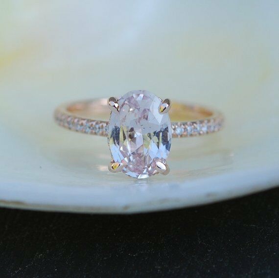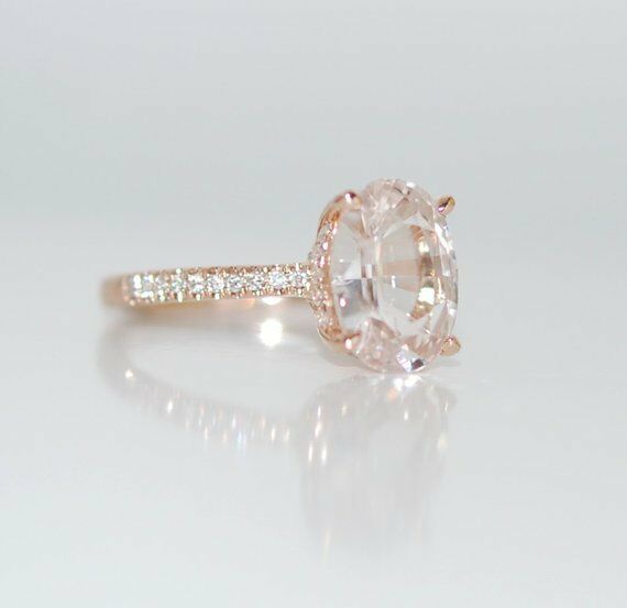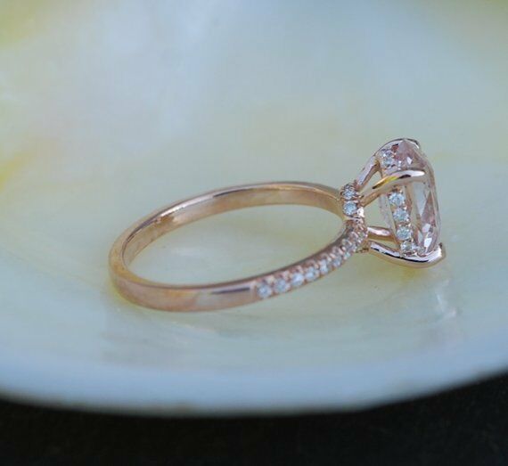 0.5ct Oval Cut Peach Morganite Solitaire Engagement Ring 14k Rose Gold Finish