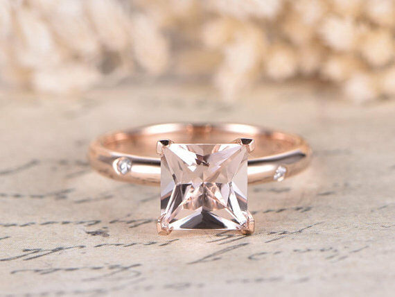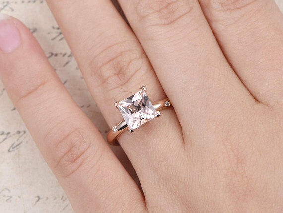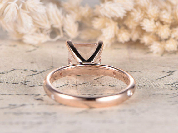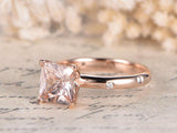 0.5ct Princess Cut Peach Morganite Solitaire Engagement Ring 14k RoseGold Finish