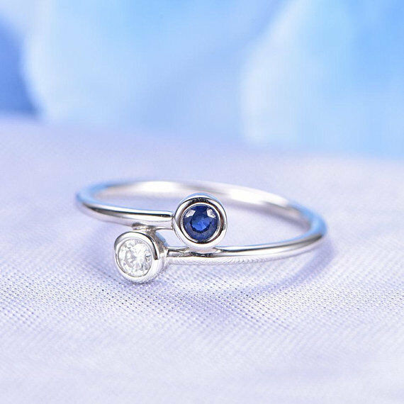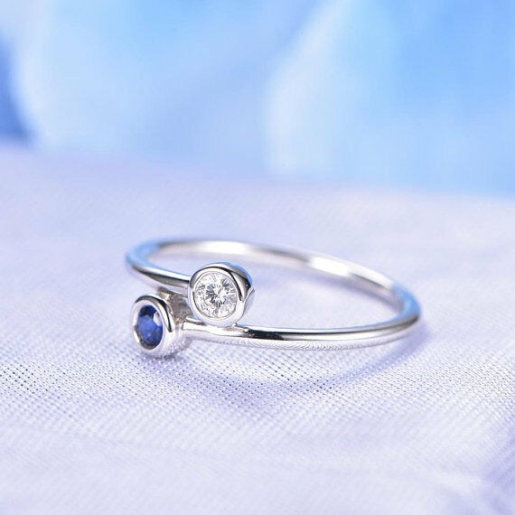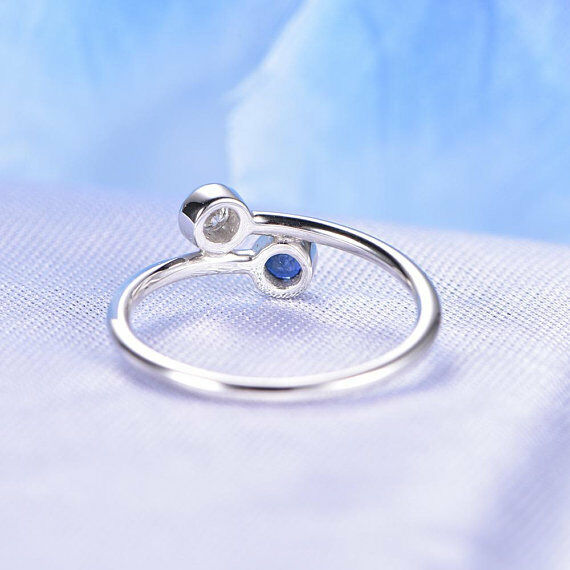 0.5ct Round Blue & White Diamond Sapphire Engagement Ring 14k White Gold Finish