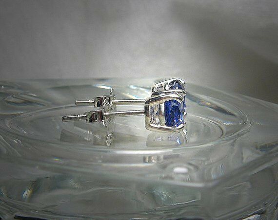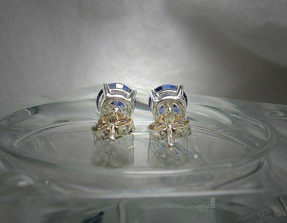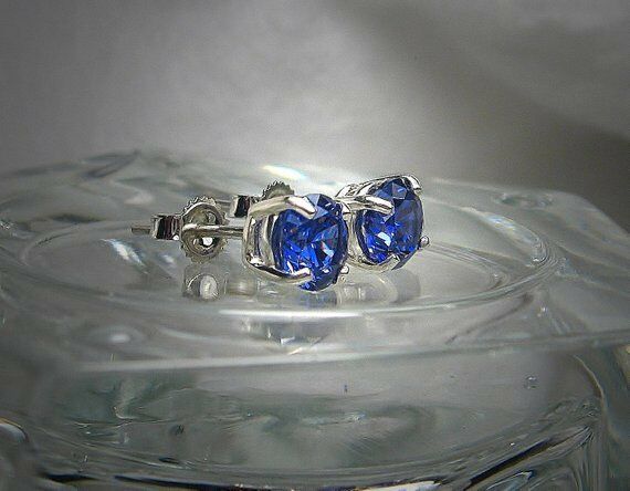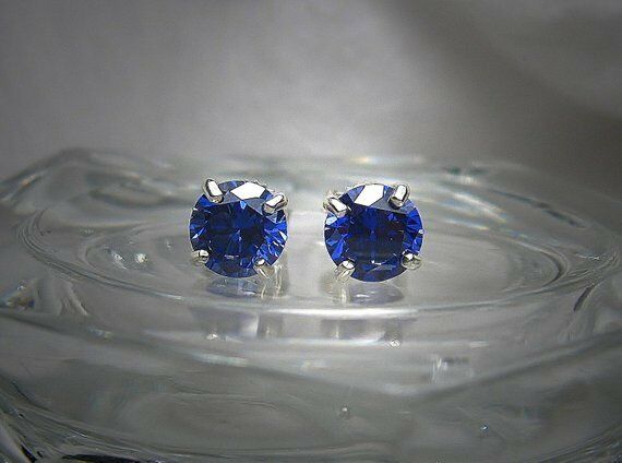0.5ct Round Cut Blue Sapphire Classic Stud Earrings Women 14k White Gold Finish