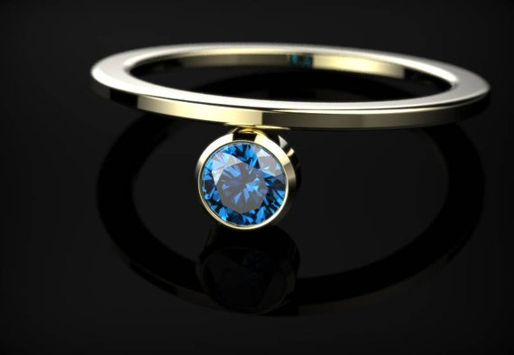 0.5ct Round Cut Blue Sapphire Engagement Ring 14k Yellow Gold Finish Solitaire