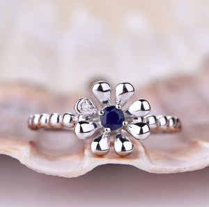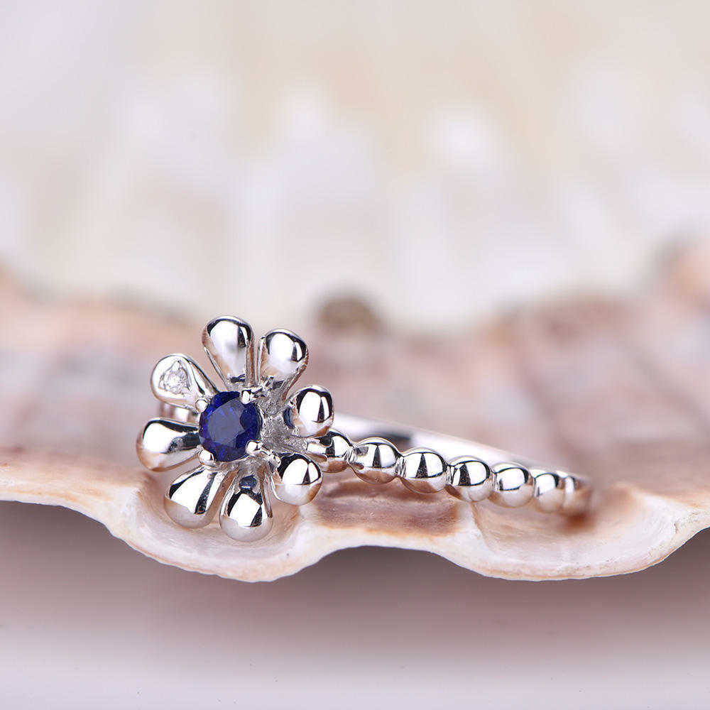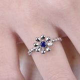 0.5ct Round Cut Blue Sapphire Vintage Floral Engagement Ring 14k White Gold Over