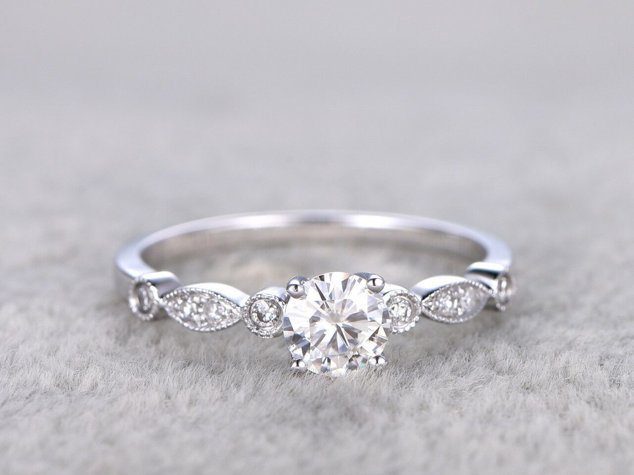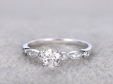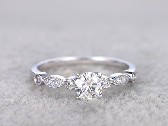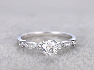 0.5ct Round Cut Diamond Designed Solitaire Engagement Ring 14k White Gold Finish