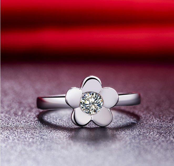 0.5ct Round Cut Diamond Engagement Ring 14k White Gold Finish Flower Shape Women