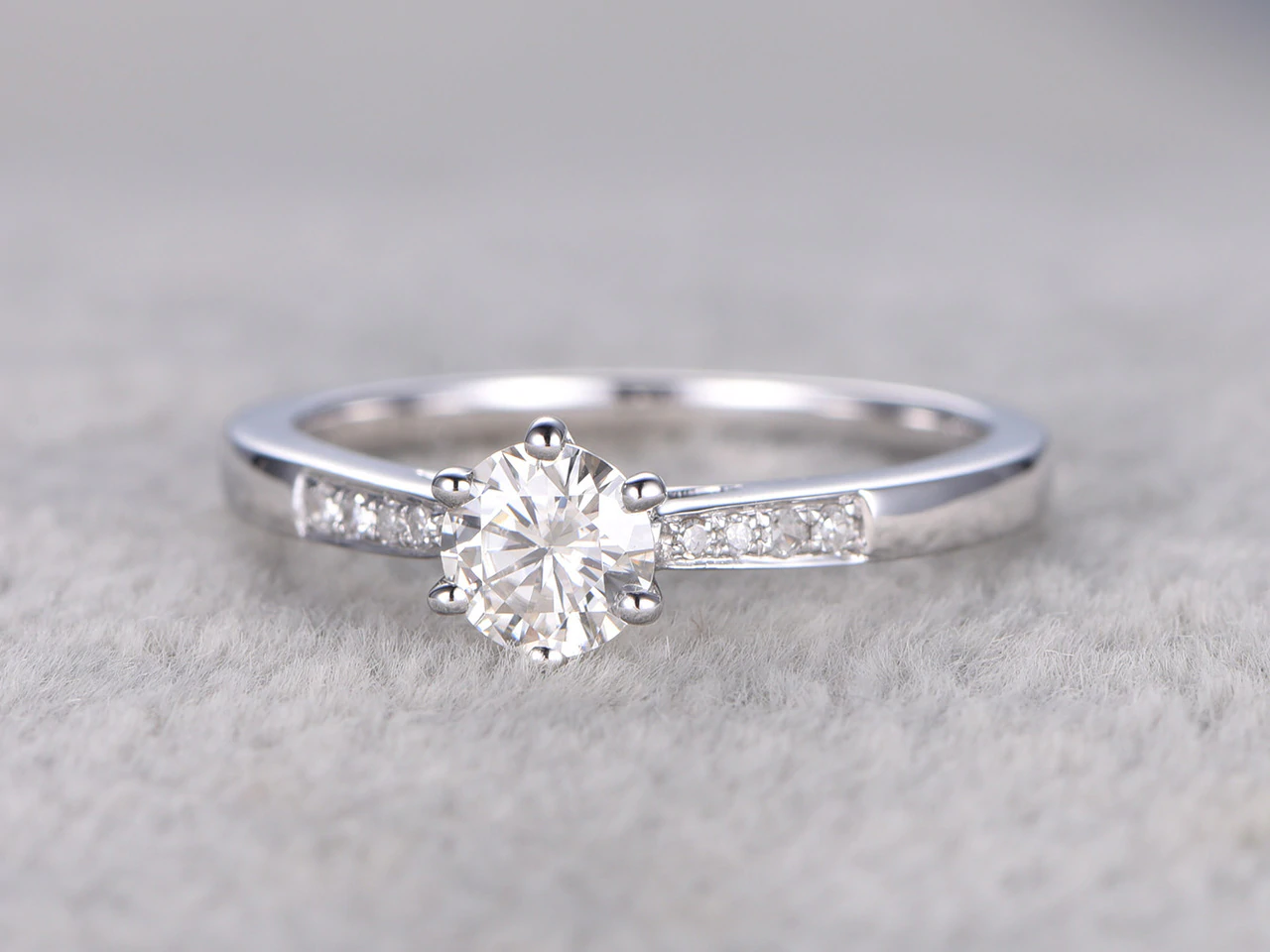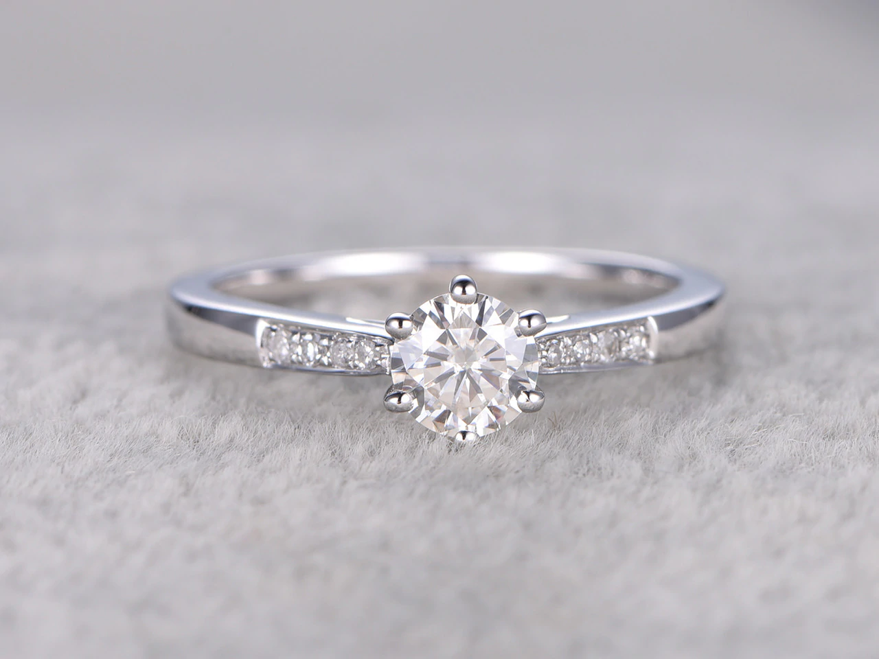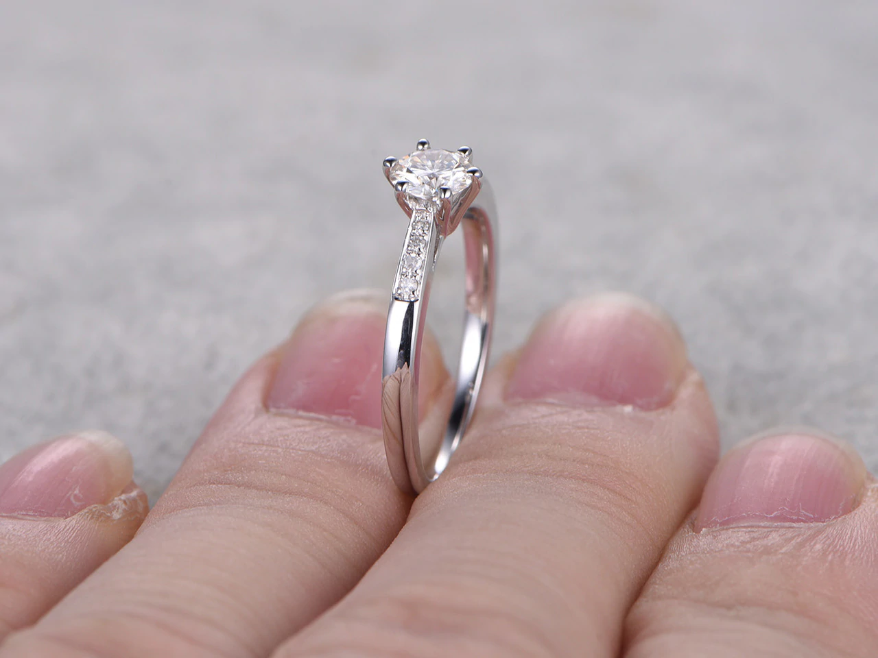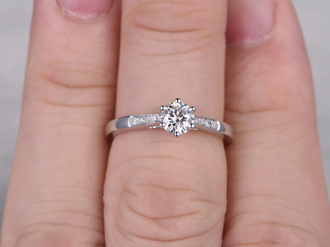 0.5ct Round Cut Diamond Engagement Ring 14k WhiteGold Finish 6 Prong Set Wedding