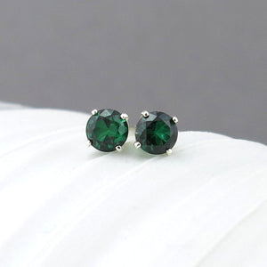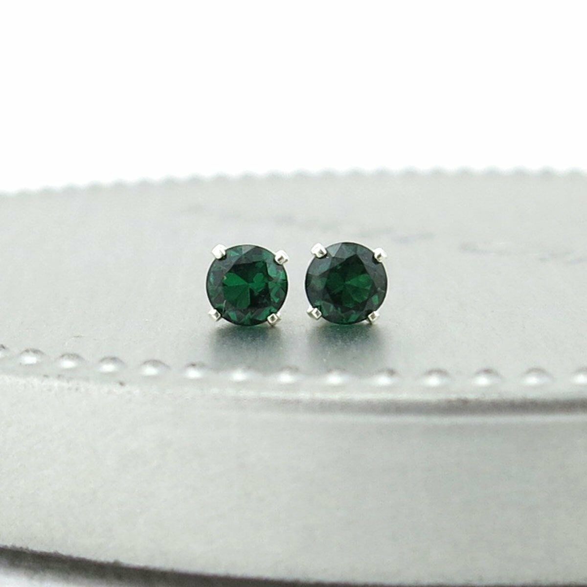 0.5ct Round Cut Green Emerald Classic Stud Women Earrings 14k White Gold Finish