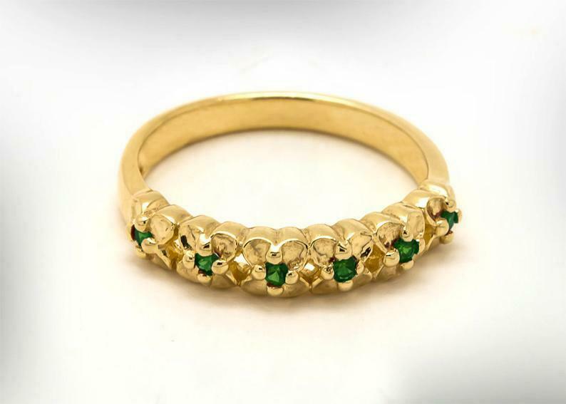 0.5ct Round Cut Green Emerald Floral Petite Wedding Band 14k Yellow Gold Finish