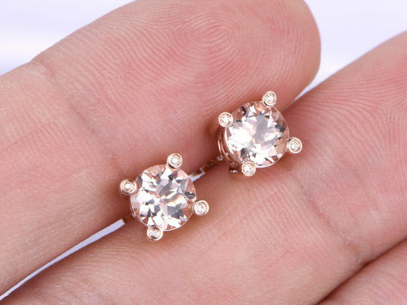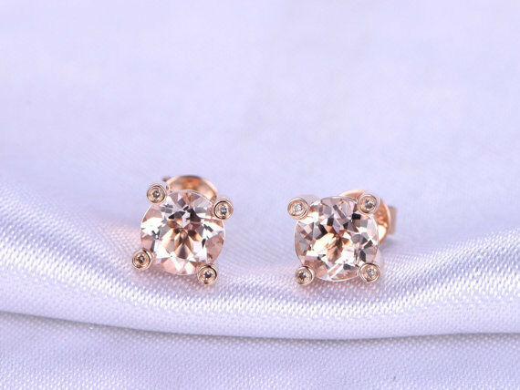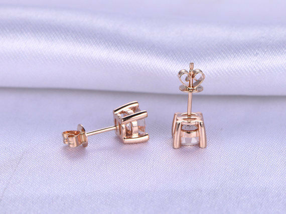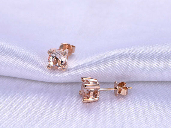 0.5ct Round Cut Peach Morganite Classic Stud Earring Women 14k Rose Gold Finish