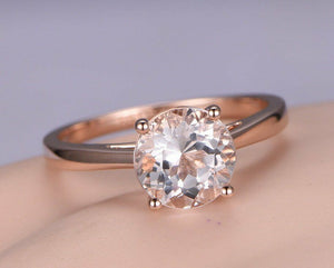 0.5ct Round Cut Peach Morganite Solitaire Engagement Ring 18k Rose Gold Finish