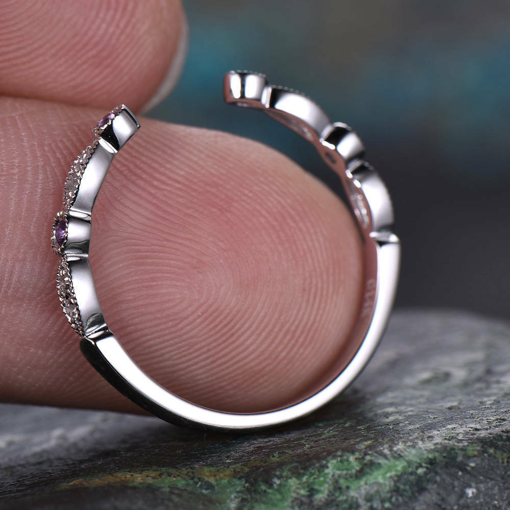 0.5Ct Round Cut Purple Amethyst Diamond Open Wedding Band 14K White Gold Finish